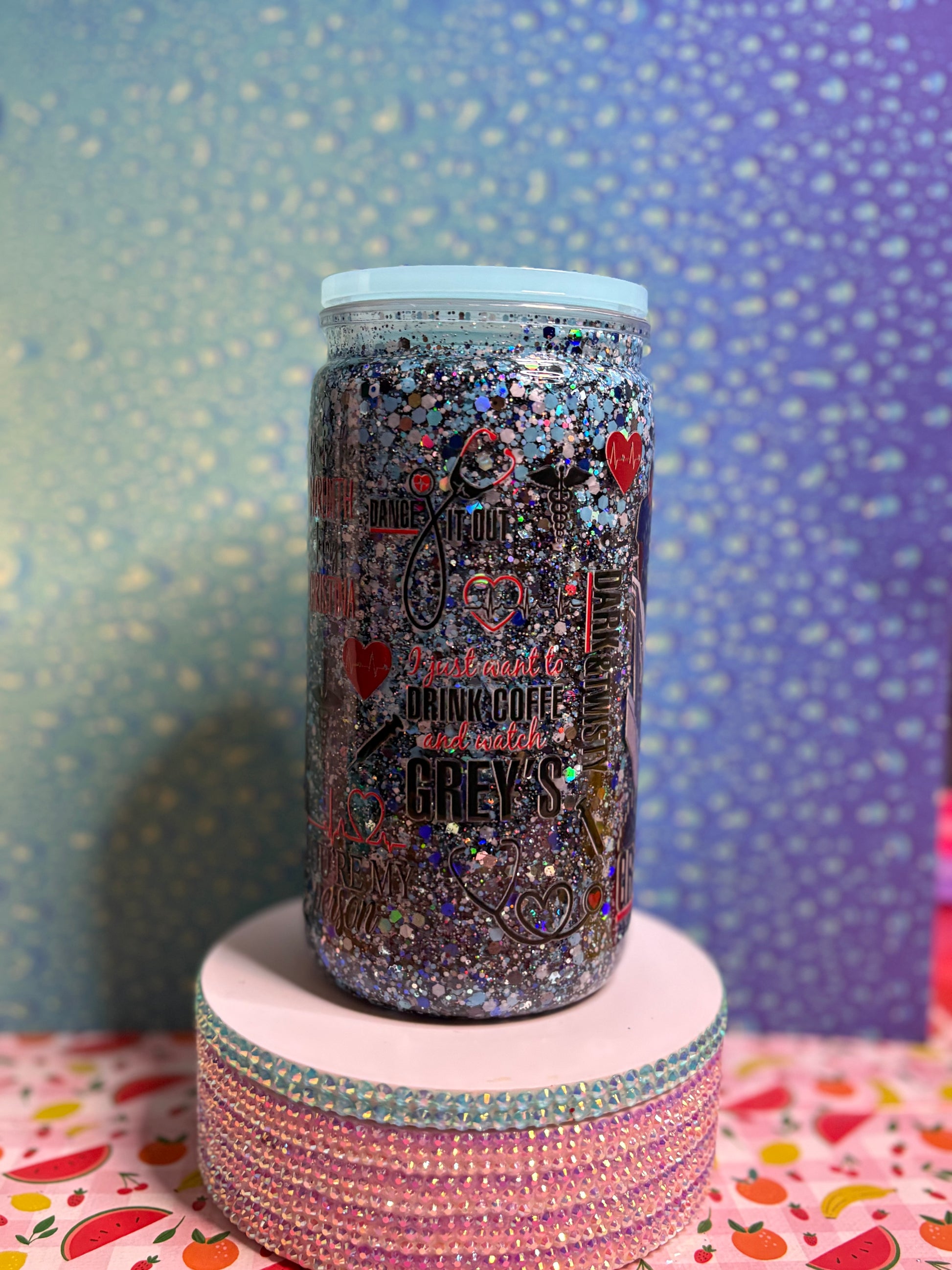 16oz snow globe with a greys anatomy design Grey's Anatomy fans will love this beautiful, collectible snow globe featuring their favorite characters and scenes from the show. This snow globe is perfect for fans of all ages and makes a great addition to any Grey's Anatomy collection.
