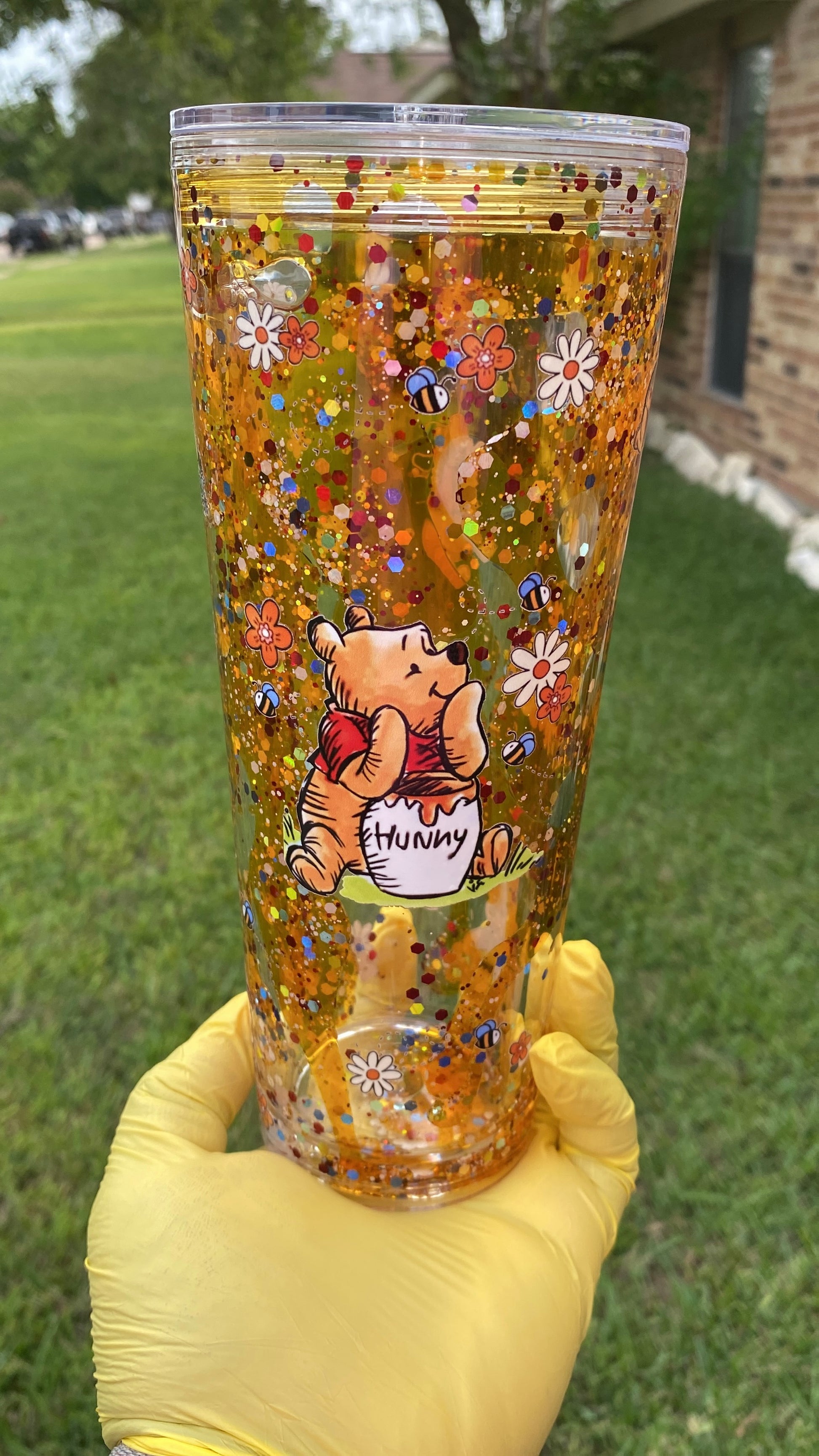 Discover the perfect tumbler for cold drink lovers with Hunny Pooh! This 24oz lava acrylic snow globe tumbler features a charming Winnie the Pooh wrap design. Keep your drinks cold and your style on point with this unique tumbler designed for cold drinks only.