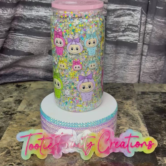 Perfect for staying stylish and sparkling on the go, this glitter-filled tumbler features cute Labubu characters and a fun, colorful design. Great for your favorite drinks and adding some extra flair to your day!
