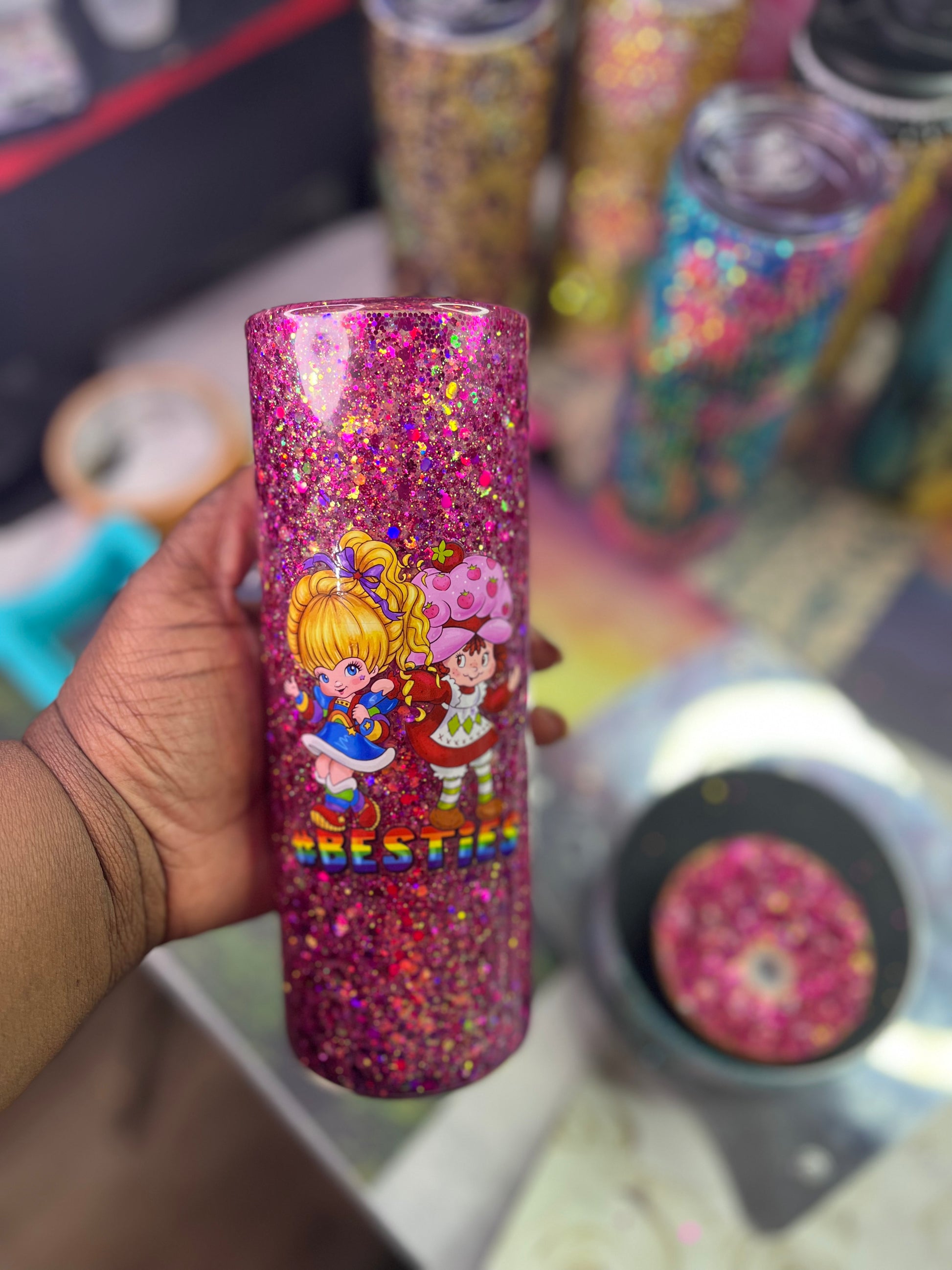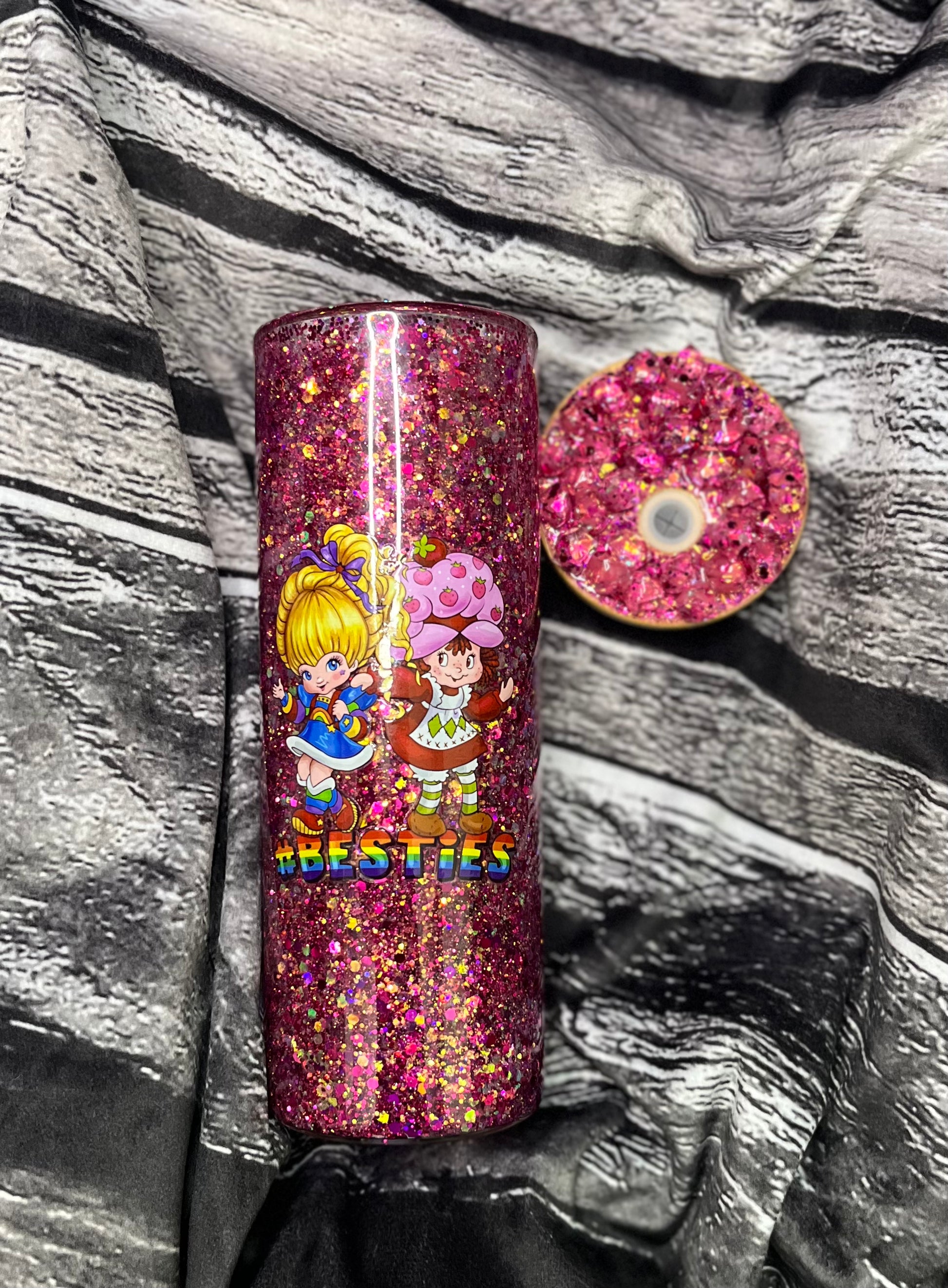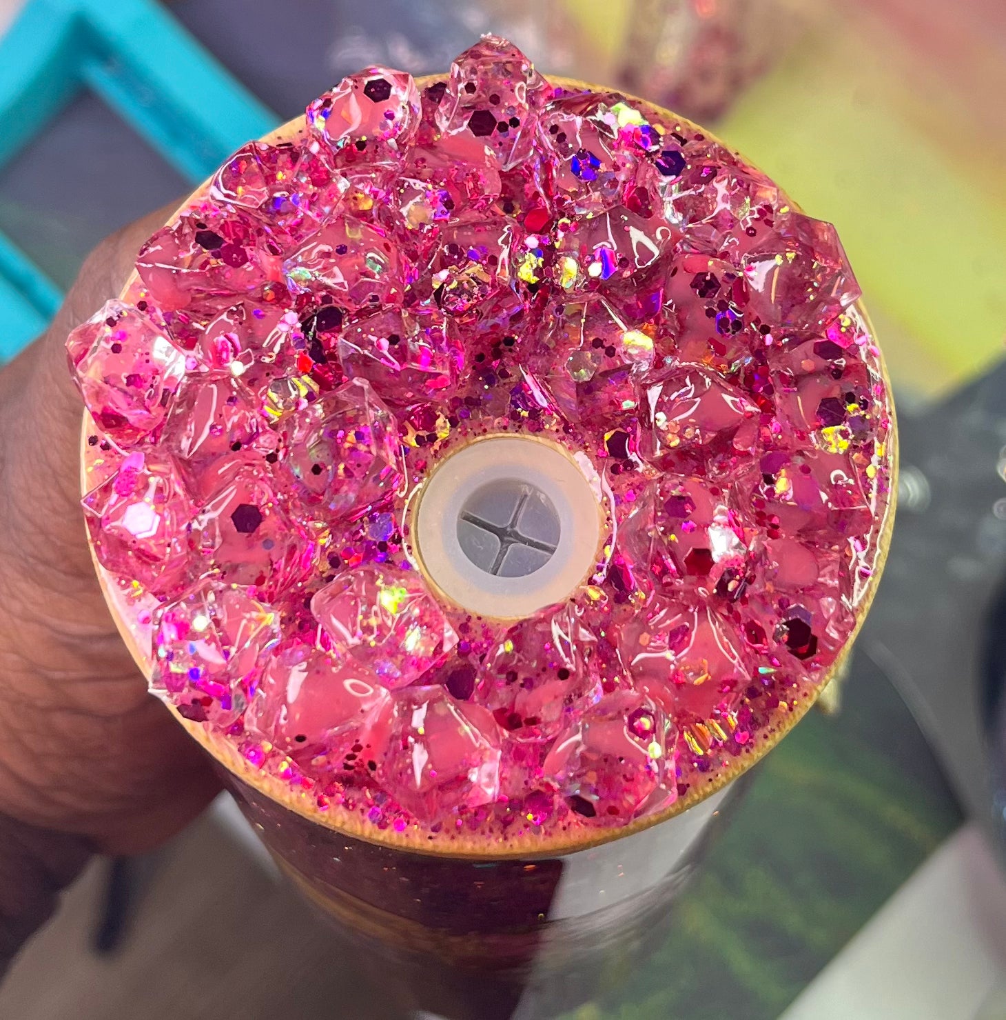 This snowglobe tumbler is crafted from glass and features beautiful glitter and a 3D lid topped with a frosted ice and drip design.